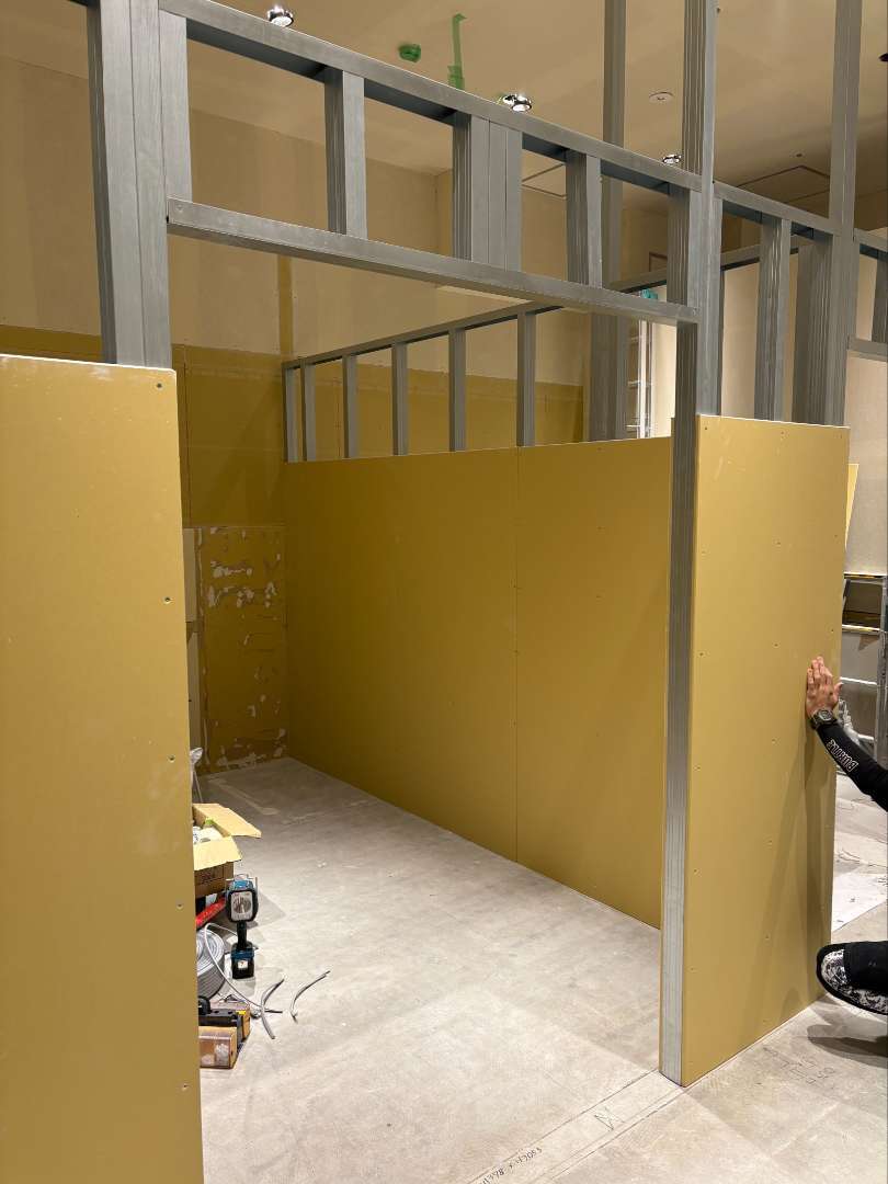 新たなレイアウトは、LGS(軽量鉄骨)とPB(プラスターボード)を使用して作成しました。これにより、既存の構造を活かしつつ、効率的で使いやすい空間を実現しています。
