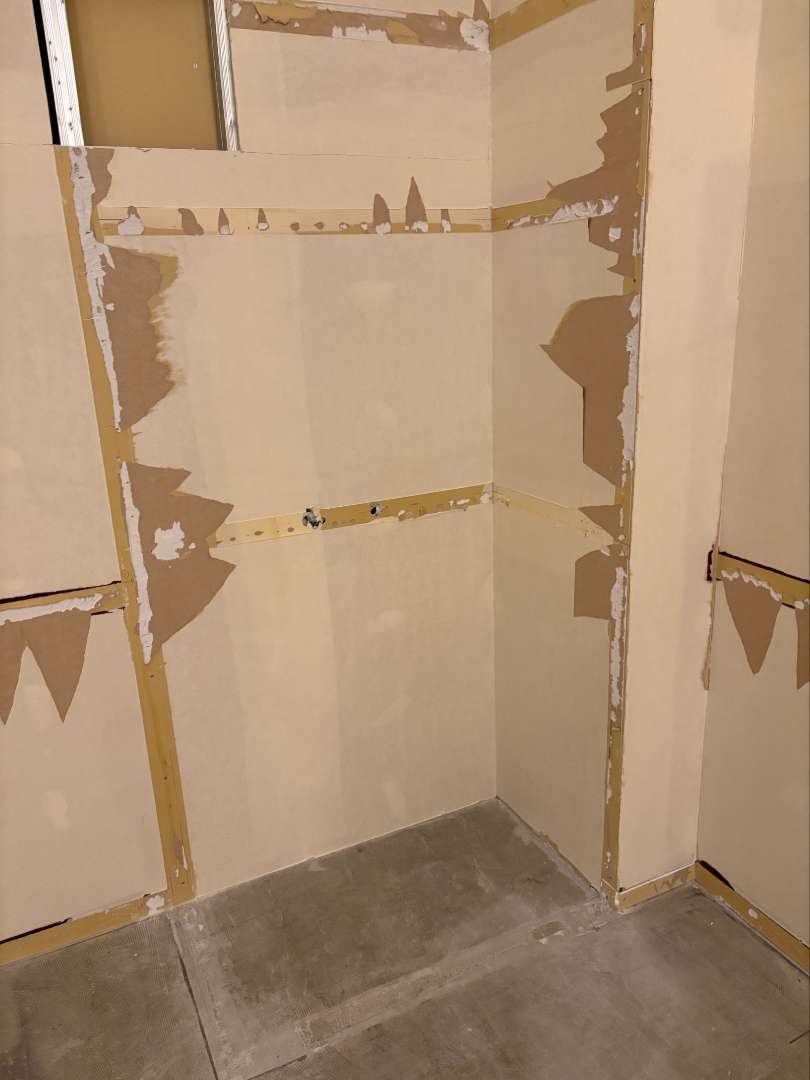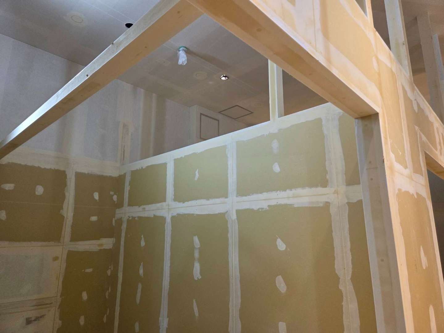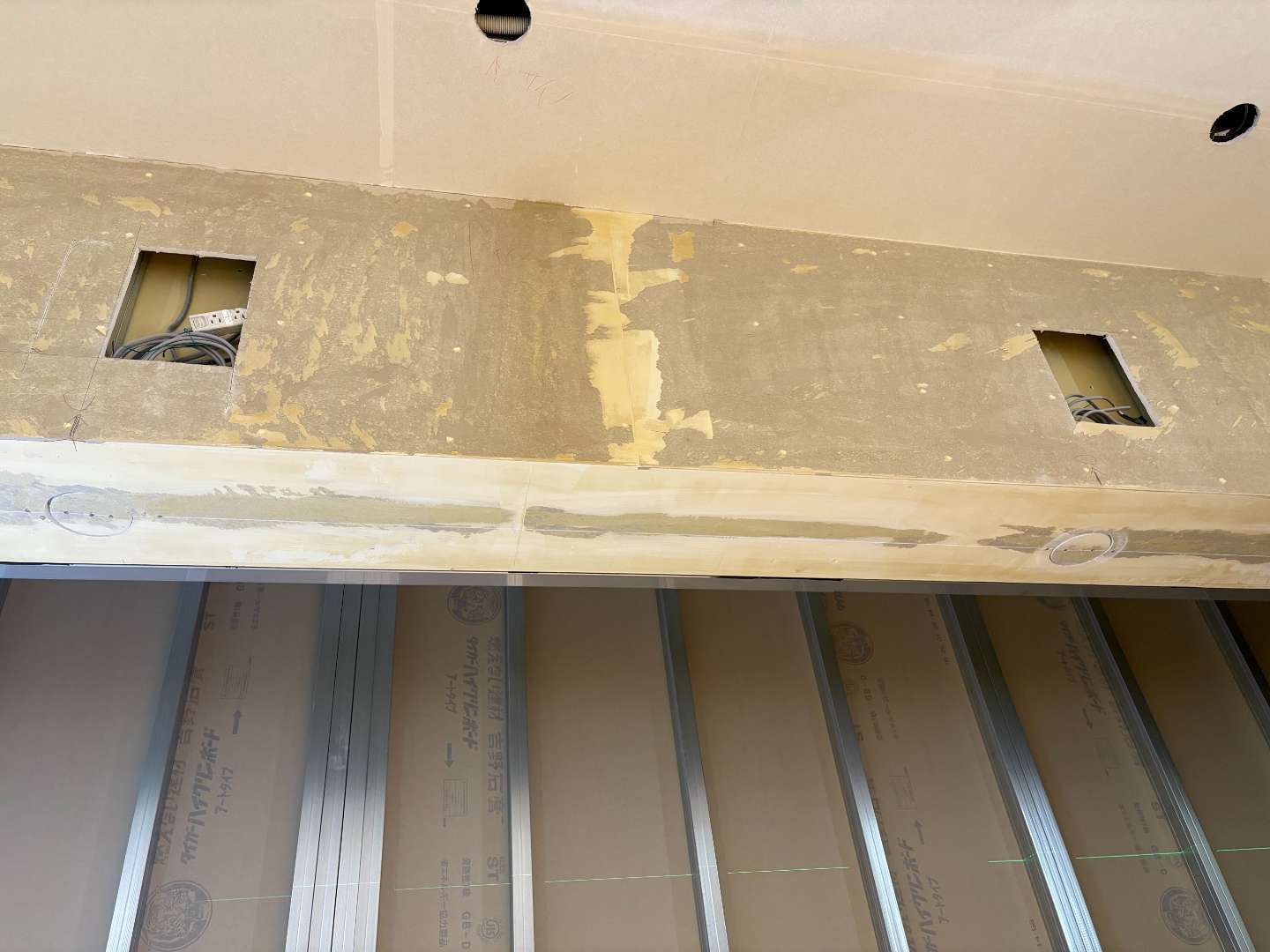 クロス張る前の様子です。パテを打った状態です。